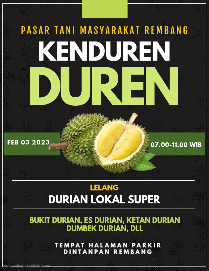 Kegiatan ini bertujuan untuk mempromosikan buah durian asal Rembang kepada khalayak. LEBIH DETAIL